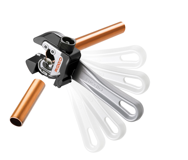 The RIDGID® Model 118 Close Quarters with AUTOFEED® operation is available with a ratchet handle to allow for easier cutting in tight, restricted spaces. With its rugged and compact design, the handle can be attached to the cutter and operated in ratchet steps as small as 10 degrees. This allows for fine indexing of the cutter to operate in tight spaces. The new ratchet handle allows more flexibility and mobility while keeping the AUTOFEED® features of the model 118 Cutter, which is designed to cut hard and soft copper, aluminum and brass.