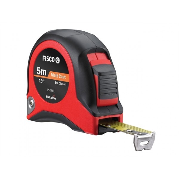 A heavy duty, ergonomic 5M (16ft) tape measure designed to last when being used on the work site. Graduations in both metric and imperial.