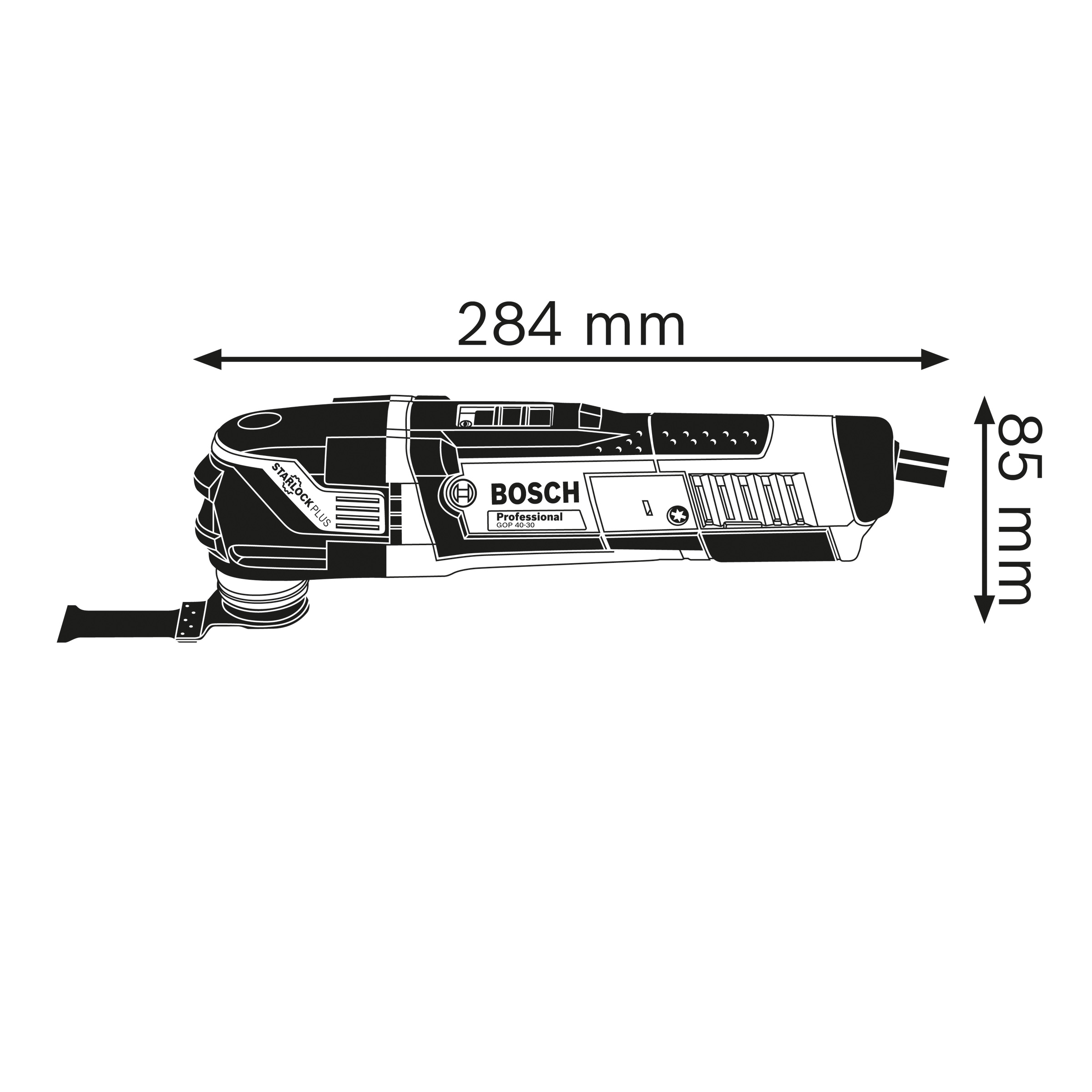 The GOP 40-30 Professional corded multi-tool is the strong all-round performer in the Bosch StarlockPlus category. It features a strong 400 W motor combined with a superior Starlock interface with an optimised 3-dimensional tight-fitting connection between the machine and accessory for the highest possible power transmission. The multi-tool also has a small ergonomic handle grip providing comfortable handling and better tool control. Furthermore, its Snap-in function enables fast and easy tool accessory changes.